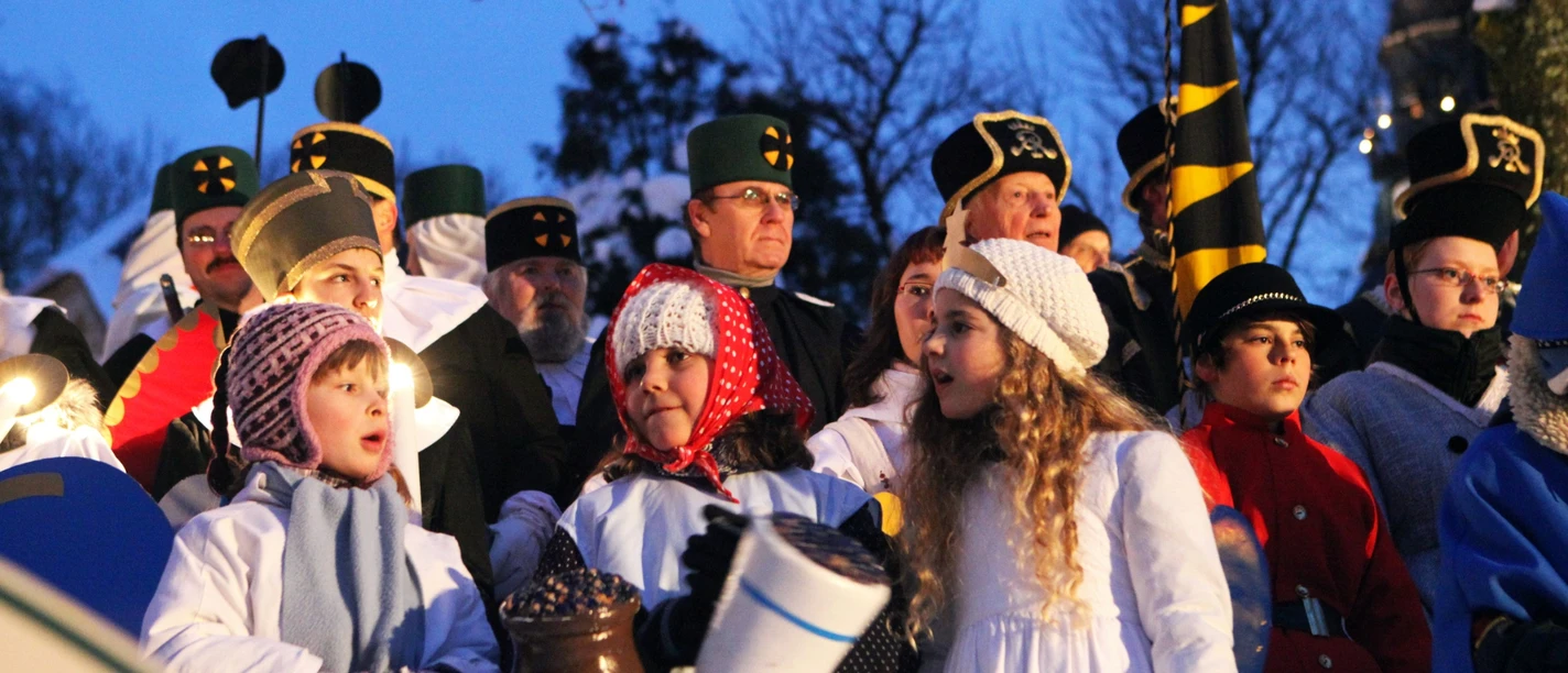 Die Berg- und Hüttenknappschafft Seiffen und die Kindertrachtengruppe "lebendiges Spielzeug" führen ihr Programm vor. Musikalisch