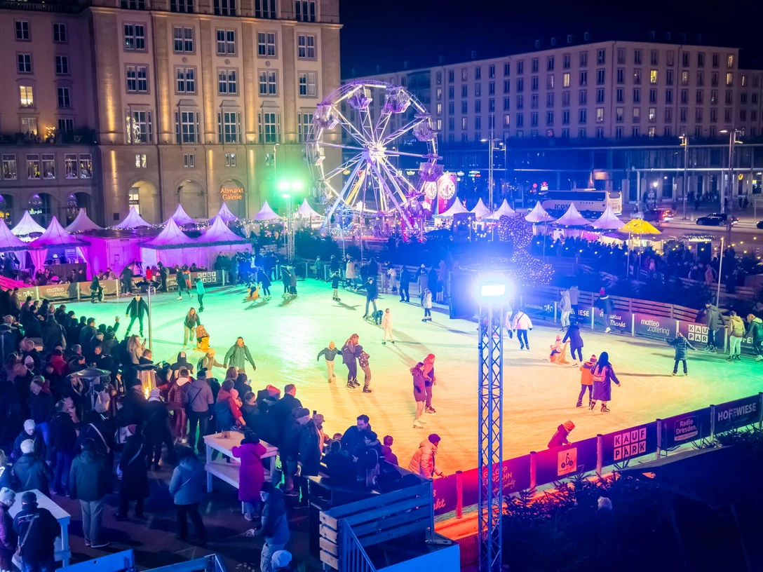 Vom 21. Januar bis 1. März 2026 lädt die Plan de Saxe GmbH erneut zum Dresdner Winterfest auf den Altmarkt ein. Eine 700 Quadratmeter große Eisfläche, stimmungsvolle Beleuchtung und vielfältige Musik verwandeln den Platz in ein lebendiges Winterwunderland.