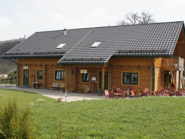 Hier finden Sie saisonale Küche aus hauptsächlich regionaler Produktion. Eine besondere Empfehlung des Hauses ist das cremige Softeis mit vielen Extras. An kühlen Tagen werden Sie im natürlich-angenehmen Blockhaus-Gastraum bewirtet, im Sommer auch im gemütlichen Außenbereich.