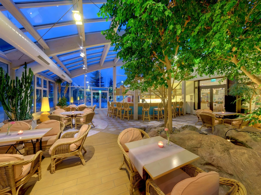 Entspannen Sie in unserem lichtdurchfluteten Wintergarten mit Bar, bei schönem Wetter auch noch mit Terrassenbetrieb im Freien. Und abends wird es hier richtig gemütlich bei einem anspruchsvollen Abendprogramm.