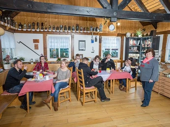 Das Café Zechenstube befindet sich im historischen Komplex des Schaubergwerkes Molchner Stolln, im Ortszentrum von Pobershau.