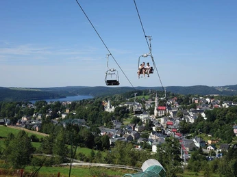 Aufregend wird es auch in „Wurzelrudis Erlebniswelt“, einem geheimnisvollen Abenteuerspielplatz, der erst mit Hilfe einer Rakete erreicht wird. Die große Kletterburg kann über unterirdische Gänge oder eine Zugbrücke erobert werden und ein Märchenbrunnen gibt sogar Wasser frei, mit dessen Hilfe Schätze ausgewaschen werden können. Rasant wird es auf der längsten Allwetterbobbahn Sachsens mit einigen Jumps und ständig wechselnden Aussichten. Ein großer Spaß ist es auch, vor den Eltern wieder aus dem Irrgarten zu finden oder in der PIT PAT- und Minigolfhalle Eibenstock den kleinen Ball über die Hindernisse hinweg einzulochen. Vom Aussichtsturm auf dem Bühl hat man zudem eine beeindruckende Rundsicht auf Stadt und Talsperre.