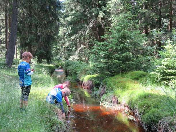 Zu einer abwechslungsreichen Tour rund um den Greifenbachstauweiher sind alle kleinen und großen Entdecker eingeladen. Vom Parkplatz aus laufen Sie am Ufer des Stauweihers durch den Campingpark hindurch, vorbei am Sandstrand und dem Waldcafe. Am Zulauf des Stauweihers lassen sich leckere Beeren, Wollgras und andere Moorpflanzen entdecken. Das „Rote Wasser“ schlängelt sich hier glasklar durch den idyllischen Wald und speist den Greifenbachstauweiher. Über die Furt mit Brücke wandern Sie zurück in Richtung Stauweiher. Am Badestrand angekommen erwarten die Kinder Sandstrand, Minigolf, ein Abenteuerspielplatz und „Tonis Welt der Quarze“. Hier können die kleinen Schatzsucher noch nach Edelsteinen schürfen oder sich ein Souvenir selbst schleifen.