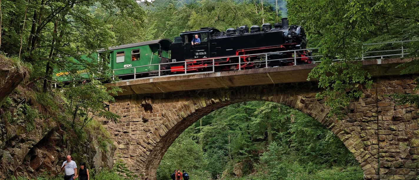 Die Wanderung ist Bestandteil der Digitalen Wandernadel "Für Bahnfreunde". Laden Sie dafür die SummitLynx App herunter, aktivieren Ihr Handy-GPS und loggen Sie sich an sehenswerten Check-In Stellen ein. Diese entführen Sie auf den insgesamt 10 Touren in die Welt von Viadukten, Bahnhöfen und faszinierenden Museen rund um das Thema.