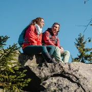 Wir steigen am Haltepunkt Zwota in die Vogtlandbahn und fahren bis zum Haltepunkt Schöneck-IFA- Ferienpark „Hohe Reuth“ und sind am Ausgangspunkt unserer Wanderung. Wir gehen auf dem Kammweg (rote/blaue Markierung) in Richtung Wohlbach und zur Quelle der Zwota, erreichen den Kirchsteig Oberzwota-Schöneck mit (gelber) Markierung.