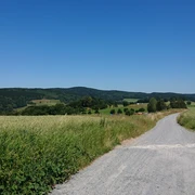 Von Nová Viska aus folgt man dann dem grünen Strich zum Poustevník (Spitzberg), auf den hinaus man einem grünen Dreieck folgt.