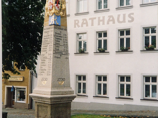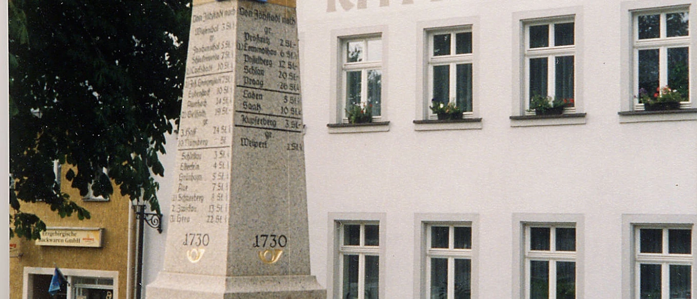 • Postmeilensäule von 1730 am Markt Jöhstadt