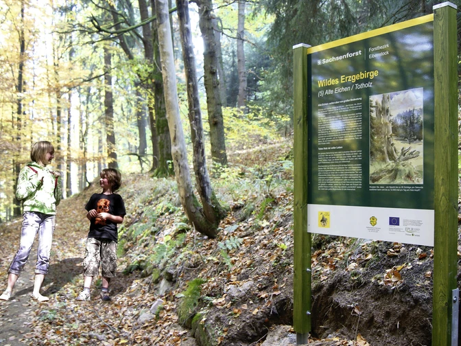 Viele Informationstafeln begleiten den Wanderer auf seinem Weg von Eibenstock (640 m/NN) hinab ins Tal der Großen Bockau (470 m/NN) und wieder hinauf nach Sosa (640 m/NN). Der zunächst asphaltierte Weg wird im Wald zum idyllischen Pfad, führt entlang eines historischen Wassergrabens zu Sachsens größten Wasserfall bei Blauenthal (Hälfte des Weges). Vorbei an Teichen, Gärten, einem Damwildgehege und einer eingefassten Waldquelle mit Kneippbecken wird ein historischer Bergwerksstolln und schließlich am Waldrand eine herrliche Panoramaaussicht auf Sosa erreicht.