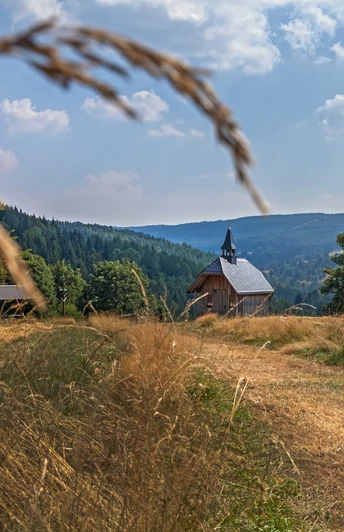 Ausgehend von der 1736 geweihten Kirche Deutschneudorf (1) wandern wir bergaufwärts. Vorbei am alten Spritzenhaus (2) wenden Sie an der 3. Station, der alten Taufglocke, noch einmal den Blick und genießen die Sicht auf den Erzgebirgskamm.