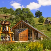 Nun steigen wir hinunter zum Abenteuer Bergwerk Bernsteinzimmer (14) und der Schachtkaue (15). Durch das Morgengründel, vorbei an mehreren kleinen Teichen und Biotopen kommen wir zum Anton-Günther-Stein mit der Stundenglocke (16) und erreichen nach kurzer Zeit wieder den Ausgangspunkt dieser Beschreibung.