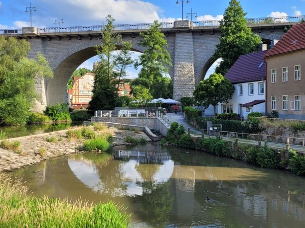 Dort erwartet Sie die Hammermühle, ein einzigartiges technisches Denkmal. Auch heute wird hier noch produziert, unter anderem köstlicher Senf und Öle, wie zum Beispiel Leinöl. Auch weitere regionale Produkte finden Sie im Mühlenshop. Sie folgen nun der Spree auf der Altstadtseite bis zum Biergarten Spreeblick. Dieser befindet sich fast unterhalb der Friedensbrücke und bietet neben fantastischen Ausblicken auch frisches Bier von der Bautzener Brauerei „Frenzel Bräu“. Die Wanderung hat zwar gerade erst begonnen, aber eine Pause empfehlen wir trotzdem. Wer direkt weiterlaufen möchte, hat auf dem Rückweg die Chance, im Brauereiverkauf vorbeizuschauen.