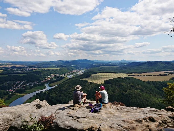 Danach geht es ein Stück zurück bis zum Abstieg auf der Südseite und über die Ebenheit hinab nach Königstein zur Fähre an die Elbe, wo die Tour endet.