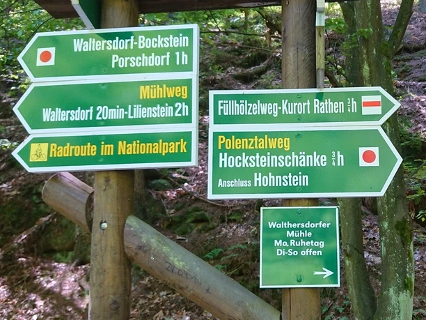 Die Tour startet am Haltepunkt Porschdorf und folgt von dort aus zunächst dem roten Punkt durch das Polenztal bis zur Waltersdorfer Mühle. Von der Waltersdorfer Mühle geht es dann weiter über den Mühlweg bis nach Waltersdorf, von wo man dann dem grünen Punkt über die Liliensteinstraße zum Lilienstein folgt.