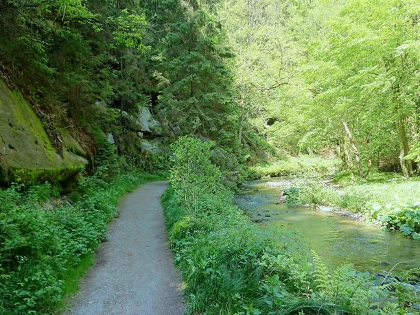 Haltepunkt Porschdorf - Polenztal - Waltersdorfer Mühle - Polenztalschänke - Hocksteinschänke - Wolfsschlucht - Hocksteinhöhle – Amselsee – Kurort Rathen - Bahnhof Kurort Rathen