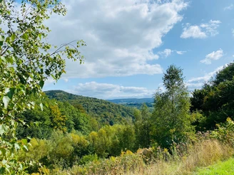 Ausgangspunkt ist die Gästeinformation Bad Schlema. Durch den Kurpark, vorbei an den Kaskaden verläuft der Weg in Richtung „Karl-Tetzner Brücke“, über sie hinweg durch den Wald mit Anstieg zu einer atemberaubenden Aussicht über das gesamte Schlematal bis hin zur Bergstadt Schneeberg. Der bekannte Aussichtspunkt hier heißt Biedenkopfblick, benannt nach Sachsens ehemaligem Ministerpräsidenten Kurt Biedenkopf und seiner Frau, die die Wiederbelebung des Kurortes in der Vergangenheit enorm unterstützen. Mit wunderschönen Impressionen im Gemüt verlässt man den Aussichtspunkt bergaufwärts und hält sich links. Nun ist „frische Waldluft schnuppern“ angesagt. Der Weg führt mit einigen Anstiegen durchs Silberbachtal, vorbei an der Eichhörnchenquelle und dem Silberbachteich. Idyllisch gelegen lohnt sich hier ein kurzer Fotostopp. Danach geht es durch Lichtungen am Waldrand, am nächsten Abzweig nach rechts und weiter durch Felder bis hin zum Ausblick auf Wildbach. Eine Sitzgruppe lädt zum Verweilen ein.