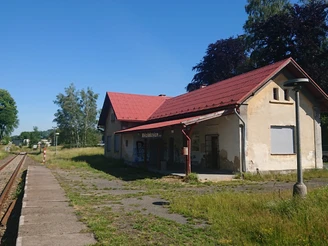 In Dolní Poustevna hält man sich links die Hauptstraße entlang und gelangt dann so zum Bahnhof, wo die Tour endet.