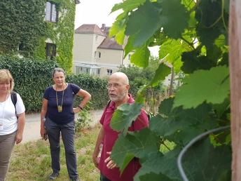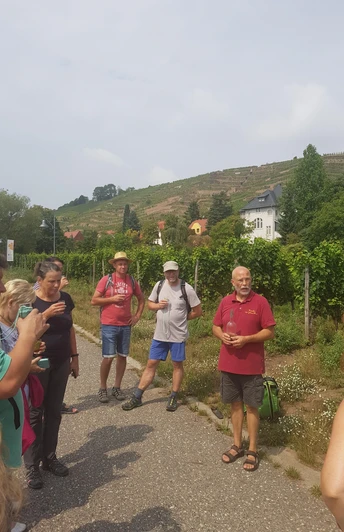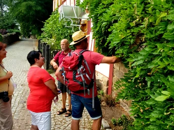 Nach dem Besuch eines neu angelegten Weinberges folgen wir dem ältesten Weinweg durch die Oberlößnitz zur kurfürstlichen Weingutsanlage „Hoflößnitz“, dem einzigen zertifizierten ökologischen Weingut in Sachsen. Nach einer Verkostung im Bioweinberg besichtigen wir eine historische Weinpresse und wandern dann zum Weinkeller „Am Goldenen Wagen“ zurück.