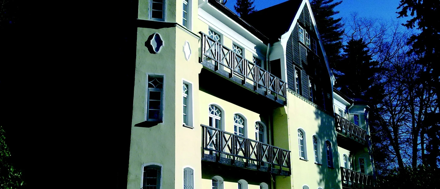 Hinter der Villa Wilisch gelangen Sie durch eine Eisenpforte zum Wald auf den rot markierten Rundwanderweg Richtung Zschopautal. Sie nehmen die Bahnunterführung und gehen entlang der Zschopauer Straße zum Wanderparkplatz auf der linken Seite Richtung Scharfenstein. Mit der grünen Markierung geht’s leicht bergan über den „Ziegenrück“ bis zum Kammweg, dann weiter mit der gelben Markierung und einzigartigen Ausblicken bis zur Burg Scharfenstein mit Schloßschänke. Sie verlassen die Burg, vorbei am Sterbehaus Karl Stülpner’s mit gelber Markierung Richtung Grießbach. Steil bergan gelangen Sie durch einen Buchenwald zur „Hans Weber Kanzel“ weiter über den Aussichtsfelsen „Affenstein“ bis zurück zur Villa Wilisch.