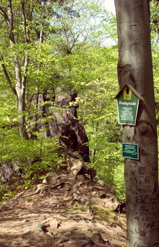 Achtung: Aufgrund des Abrisses der Brücke zur Überquerung der Roten Weißeritz Ende des Sagenweges ist der Anschluss/Rückweg nicht mehr über den Wanderweg im Rabenauer Grund möglich. Daher empfehlen nicht den Abstieg über den Paul-Laue-Steig sondern am "Predigtstuhl" direkt den Rückweg auf gleichem Wege bis zum Abzweig Semmelsteig und dann weiter zurück zum Ausgangsort.