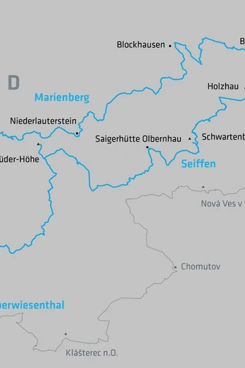 Mit knapp 787 Metern ist der Schwartenberg einer der höchsten im Osterzgebirge und bietet einen wundervollen Rundumblick. Von hier folgt die Stoneman Miriquidi Road Route einer rasanten Abfahrt nach Neuhausen. Ein Wahrzeichen, das wie kein zweites für das Erzgebirge steht, nimmt alle Pedalieros in Empfang: Im Nussknackermuseum grüßt der mit zehn Metern höchste funktionsfähige Nussknacker der Welt. Schloss Purschenstein, das im 12. Jhd. erbaute, Relikt beherbergt heute ein Hotel. Gleich nebenan befindet sich das Glasmuseum. Die ausgestellte Handwerkskunst lässt erahnen, warum das Erzgebirge im Mittelalter als „Glasland“ bezeichnet wurde. Von Neuhausen führt die Route vorbei an der idyllisch gelegenen Talsperre Rauschenbach. Nach einem kurzen Abschnitt entlang der deutsch-tschechischen Grenze geht es die nächste Rampe hinauf, auf die eine lange, schnurgerade Abfahrt zum nächsten Checkpoint folgt: Holzhau.