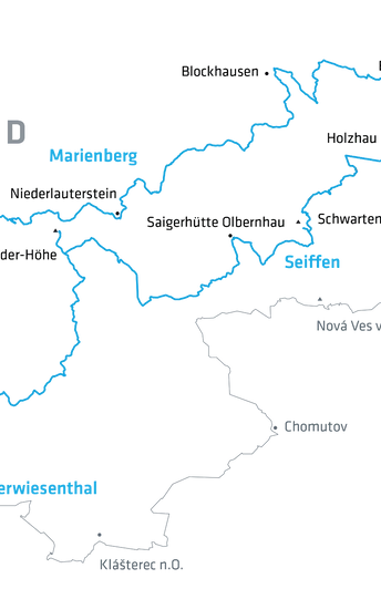 Einst angelegt als Wasserreservoir für die Bergbauanlagen von Ehrenfriedersdorf, ist der Weiher heute ein bekanntes Naherholungsgebiet. Kurz darauf erreichst Du die Bergbaustadt Geyer mit der Geyerschen Binge. Durch weitgezogene Fichtenwälder, vorbei am Schwarzen Teich, passierst Du Elterlein. Über Pöhla, dem Geburtsort der Skisprunglegende und Stoneman-Botschafter Jens Weißflog, führt Dich ein langer Anstieg in Richtung tschechischer Grenze. Auf knapp 600 Metern erreichst Du den Checkpoint an der Böhmischen Mühle in Rittersgrün.