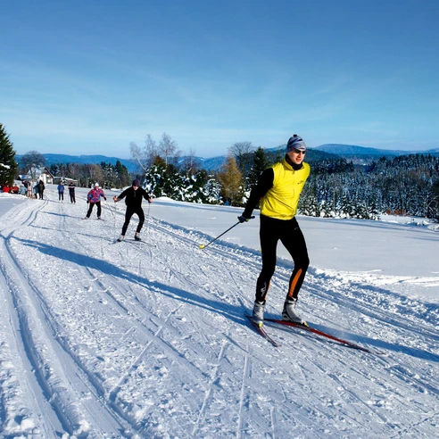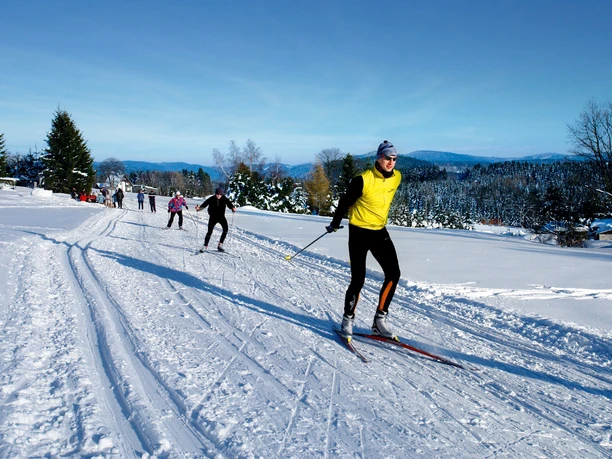 Die ca. lange 5km-Schleife ist eine leichte Loipe, die für Familien und Anfänger geeignet ist. Auf der sonnigen Strecke hat man eine tolle Aussicht auf die umliegende Gegend.