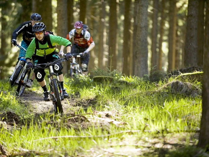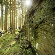 Der Black Raven ist die Mutter der Trailrunden auf dem Rabenberg und verbindet die Highlights im TrailCenter miteinander. Nach dem Einstieg über den "Valley View"-Trail und durch die "Dark Alley" mit seinen Natur-Wallrides geht es nach dem Gegenanstieg zum "Postmans"-Trail und "Hunters Path". Wer dann noch im Tal die Runde über das Sauberg-Karussel anschließen möchte, kann das als Option tun. Die Normalfahrt führt über den Rabenberg zum Start einer 4,5-Kilometer-Trailabfahrt: Über den leichten "Final Flow"-Trail geht es zum Beginn des "Stone Garden", einem Sahnestück für Kenner. Neben flowigen Abschnitten gibt es hier ein halbes Dutzend Steinpassagen zu bewältigen und die eine oder andere knifflige Stelle. Als Entspannung folgt der sonnige "Kyril"-Trail, bevor die Passage "Rocks & Berms" nochmals Konzentration erfordert. Über den "Garage"-Trail geht es dann ins Tal nach Erlabrunn. Und weil Singletrails nicht immer nur bergab führen, wartet beim Anstieg Richtung Rabenberg auch der eine oder andere Höhenmeter auf dem Trail berghoch. Dafür wird man nach dem Anstieg mit dem unteren Teil des "Kreuzotter" Downhills belohnt, und zum Abschluss geht es über den Gipfeltrail zurück zum Sportpark Rabenberg.