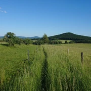 Von Vlci Hora aus geht es dann weiter ein Stück durch den Ort dem grünen Strich nach, bis man dann dem blauen Strich weiter in Richtung Pod Kocici Skalou folgt.