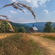 Der Weg beginnt im Zentrum Seiffens und führt ein Stück die Bahnhofstraße bergauf. An der nächsten Kreuzung halten Sie sich halbrechts und gehen in Richtung Ortsteil Steinhübel. Dort im Bebauungskern gehen Sie wieder rechts ab, bergwärts weiter durch Felder und Wiesen bis zum Waldrand und hier nach links zwischen einigen Häusern hindurch. Dahinter gehen Sie rechts am Talhang entlang hinab in das Flöhatal. Schon bald kann man dann die ersten Häuser von Dittersbach (OT Neuhausen) sehen. Nach dem Durchqueren einer Waldblöße finden Sie am beginnenden Fichtenwald dicht am Weg einen Steinblock aus Serpentinstein. Dies ist der legendäre Taufstein, über dem während des Dreißigjährigen Krieges Kinder der Umgebung ihre Taufe empfangen haben. Näheres ist an Ort und Stelle zu erfahren. Der Weg führt Sie dann weiter hinab auf die Talstraße, dieser Sie bis in den Ortskern von Neuhausens folgen. Den Rückweg nach Seiffen (rote Markierung) treten Sie dann bei der Kirche an. Der Weg führt rechts in Richtung Schwartenberg, über die so genannte Schwarte. An der höchsten Stelle durchzieht er ein Waldstück, in dessen Mitte bietet sich nach links ein Abstecher zum Schwartenberg an, der ein hervorragender Aussichtspunkt ist. Weiter geht es auf der roten Markierung, vorbei an einer wetterzerzausten Buche, wo sich ein herzerfrischender Ausblick ins Kammgebiet zeigt, hinab ins Tal nach Seiffen.