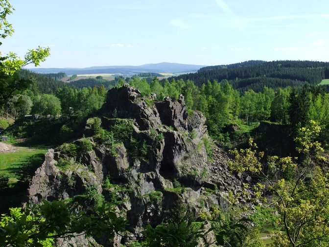 Zinnbergbaus dar. In der Nähe der Route, am Sauberg, befindet sich das
